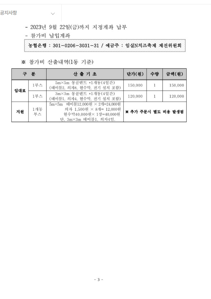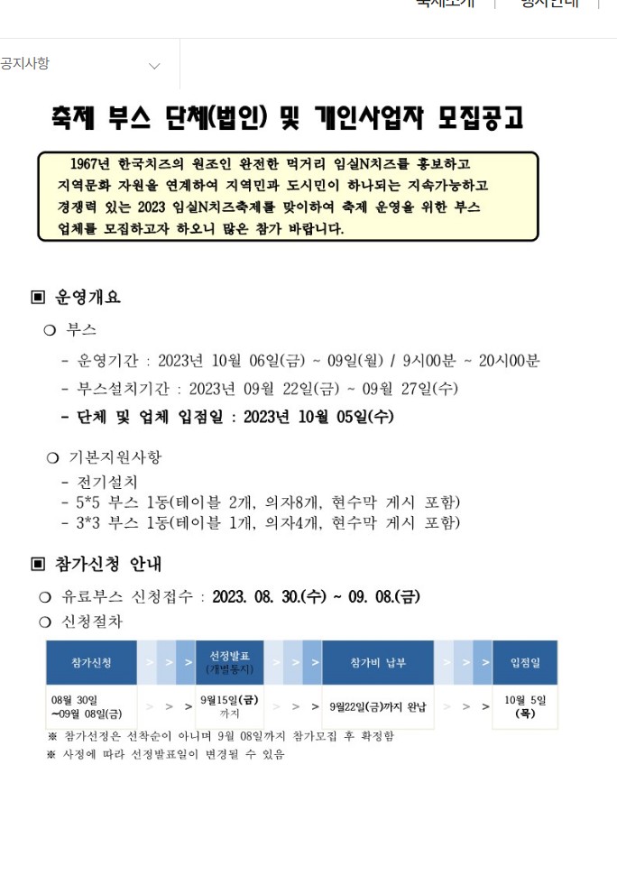 2023 임실N치즈축제 단체 및 개인사업자 유료부스 모집